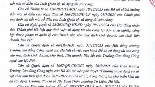 THÔNG BÁO: Về việc lựa chọn đối tác liên kết khai thác, sử dụng tài sản công phục vụ hoạt động đào tạo, dịch vụ của Trường Cao đăng Công nghệ cao Hà Nội