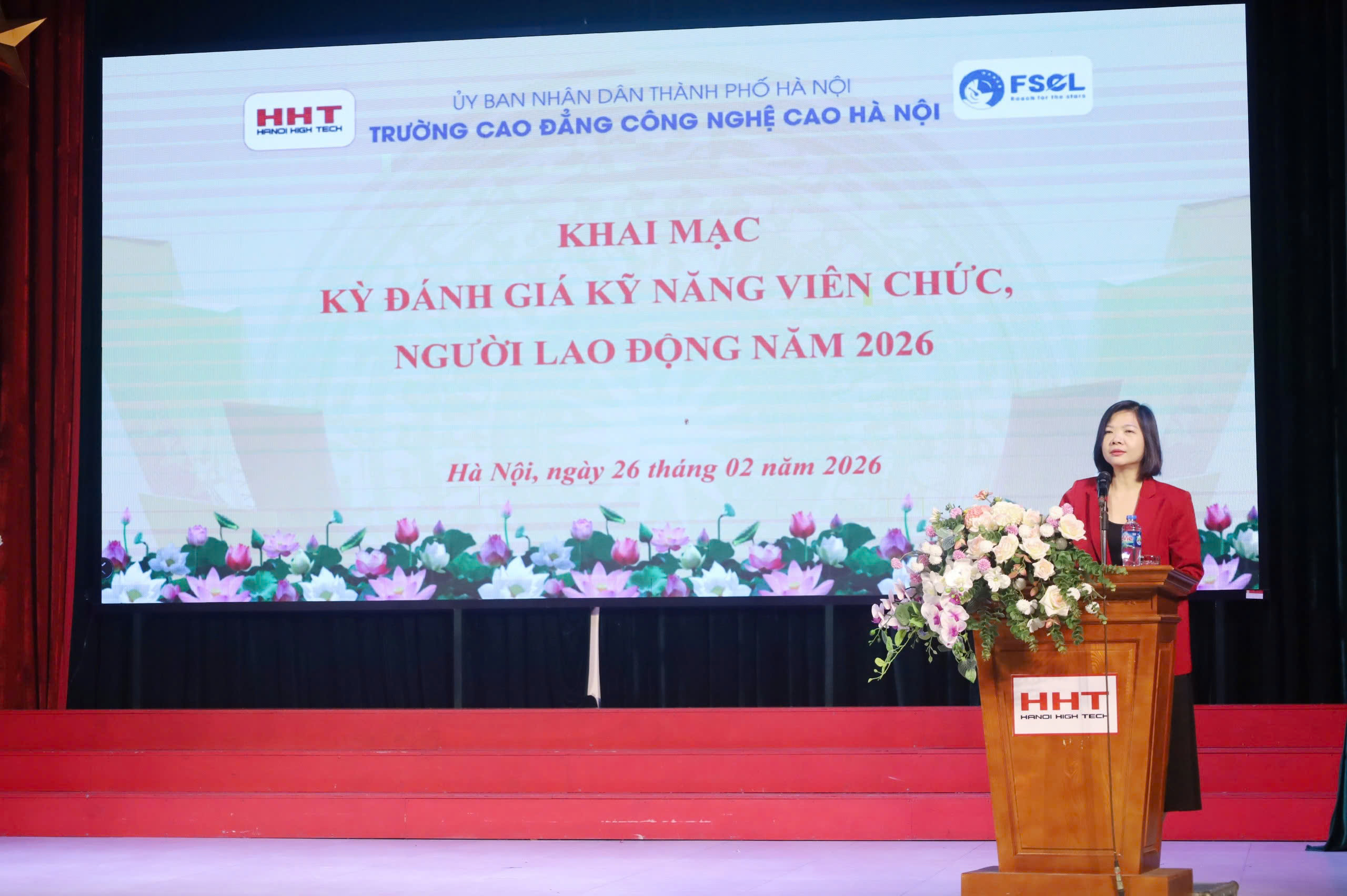 Sáng ngày 26/02/2026, tại Trường Cao đẳng Công nghệ cao Hà Nội (HHT); Kỳ đánh giá kỹ năng viên chức, người lao động năm 2026 chính thức khai mạc trong không khí nghiêm túc, trách nhiệm và quyết tâm đổi mới. Đây không chỉ là một hoạt động chuyên môn thường niên mà là một bước đi thể hiện rõ tư duy quản trị hiện đại của Nhà trường: lấy chuẩn năng lực làm nền tảng, lấy đánh giá làm động lực phát triển và lấy con người làm trung tâm của mọi chiến lược.