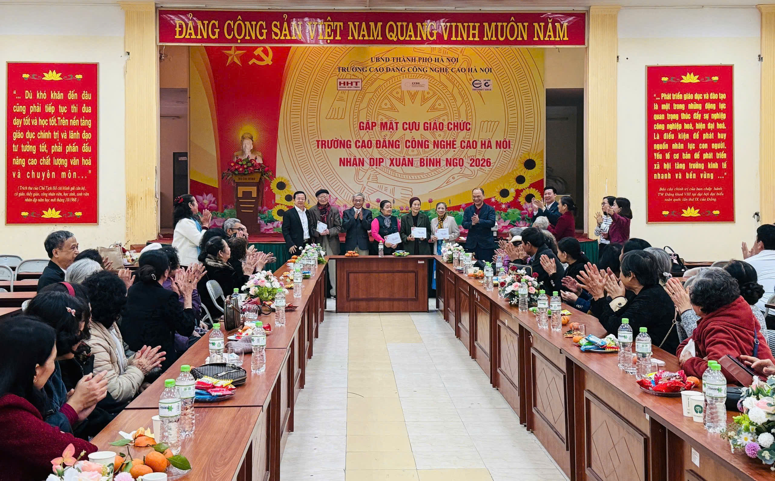 Trong không khí se lạnh đầu Xuân, (sáng ngày 06/02/2026), Hội trường Cơ sở 2 – Trường Cao đẳng Công nghệ cao Hà Nội như ấm lên bởi những cái bắt tay thân quen, những ánh mắt rạng rỡ và những nụ cười chan chứa nghĩa tình. Chương trình: “Gặp mặt Cựu giáo chức HHT nhân dịp Xuân Bính Ngọ 2026” không chỉ là một buổi hội ngộ đầu năm, mà còn là cuộc trở về đầy xúc động của những người đã dành cả cuộc đời cho sự nghiệp giáo dục và đào tạo. Ở đó, thời gian như chậm lại để những ký ức, những năm tháng cống hiến thầm lặng được gọi tên bằng sự trân trọng và biết ơn sâu sắc.