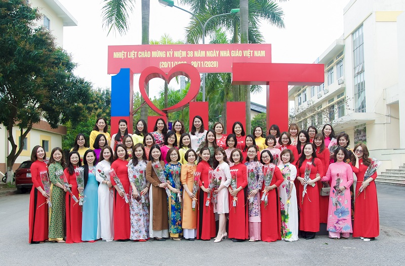 Tập thể nữ cán bộ, giáo viên chụp ảnh lưu niệm với Lãnh đạo nhà trường.