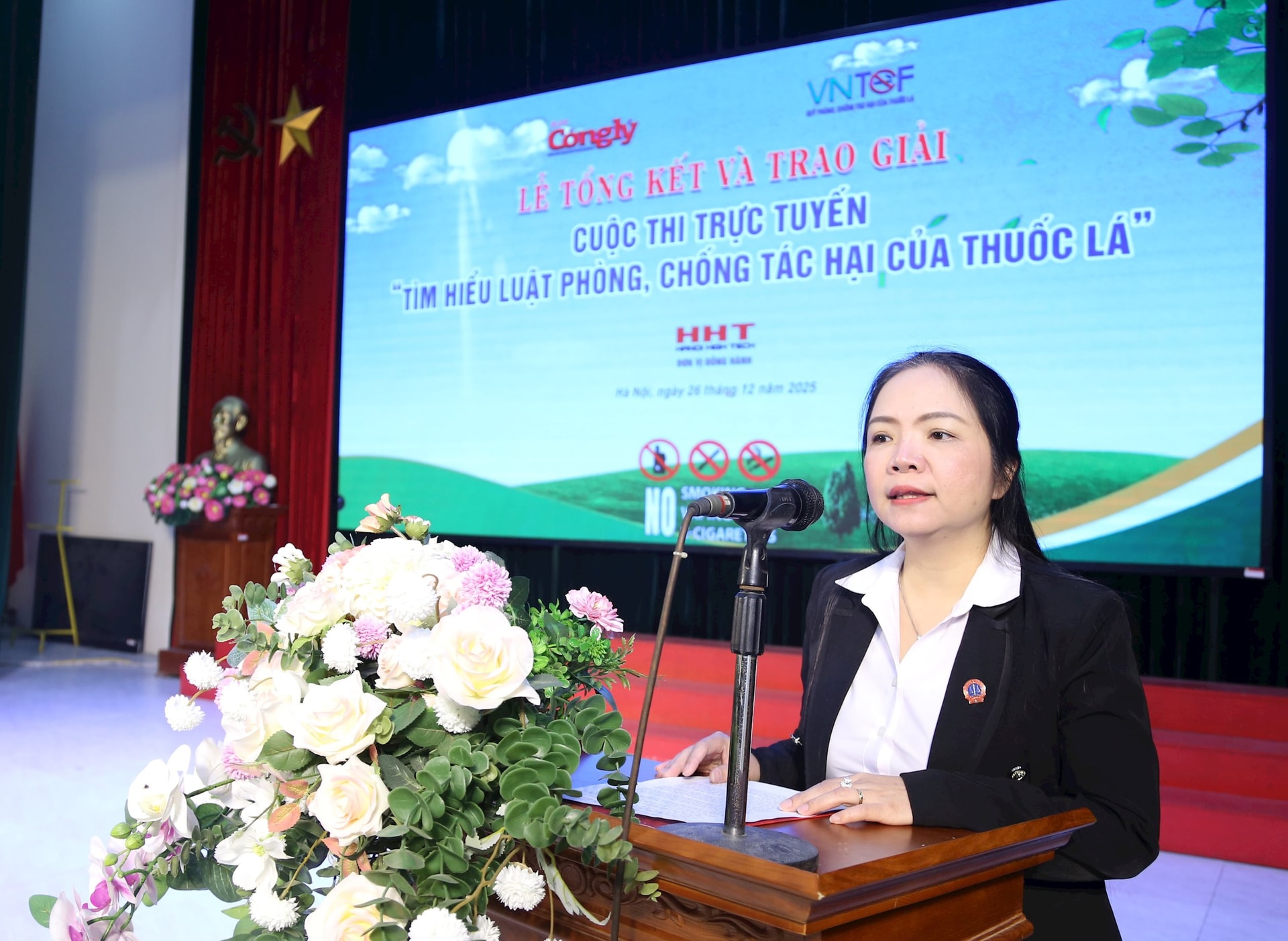 Sáng ngày 26/12/2025, tại trường Cao đẳng Công nghệ cao Hà Nội, Báo Công lý – Cơ quan ngôn luận của Tòa án nhân dân tối cao phối hợp với Quỹ Phòng, chống tác hại của thuốc lá – Bộ Y tế tổ chức Lễ tổng kết và trao giải Cuộc thi trực tuyến” “Tìm hiểu Luật Phòng, chống tác hại của thuốc lá”. Kết thúc cuộc thi, HHT giành giải Nhất (nội dung tập thể).