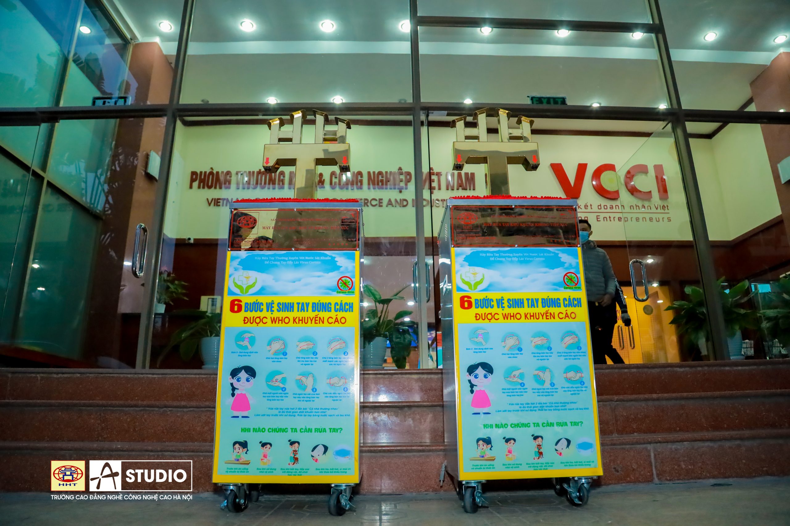 Máy rửa tay sát khuẩn tự động không tiếp xúc thương hiệu HHT có mặt tại Phòng Thương mại và Công nghiệp Việt Nam – VCCI Hà Nội.
