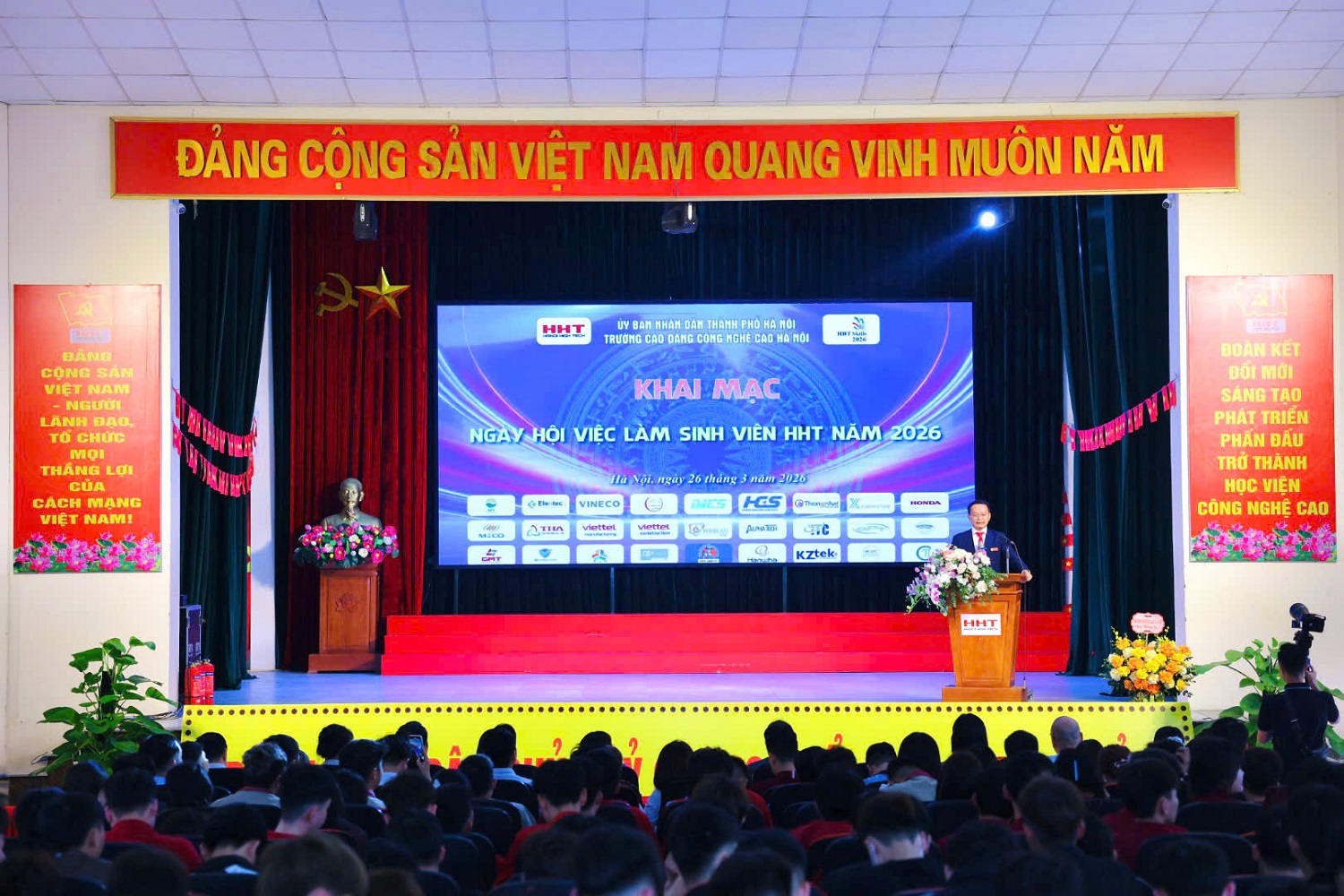 (Hà Nội, ngày 26/3/2026) – Tại Hội trường nhà E, Trường Cao đẳng Công nghệ cao Hà Nội đã long trọng tổ chức Khai mạc Ngày hội việc làm sinh viên HHT năm 2026 kết hợp chương trình trao tặng xe ô tô phục vụ đào tạo từ Honda Việt Nam, tạo nên một sự kiện quy mô, ý nghĩa, thu hút sự tham gia của đông đảo doanh nghiệp, cán bộ giảng viên và sinh viên.