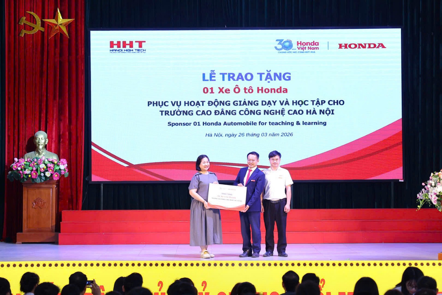 Điểm nhấn đặc biệt của chương trình là lễ tiếp nhận tài trợ 01 xe ô tô Honda CR-V từ Honda Việt Nam. Đây là thiết bị có giá trị thiết thực, phục vụ trực tiếp cho công tác giảng dạy và thực hành của sinh viên ngành công nghệ kỹ thuật ô tô.