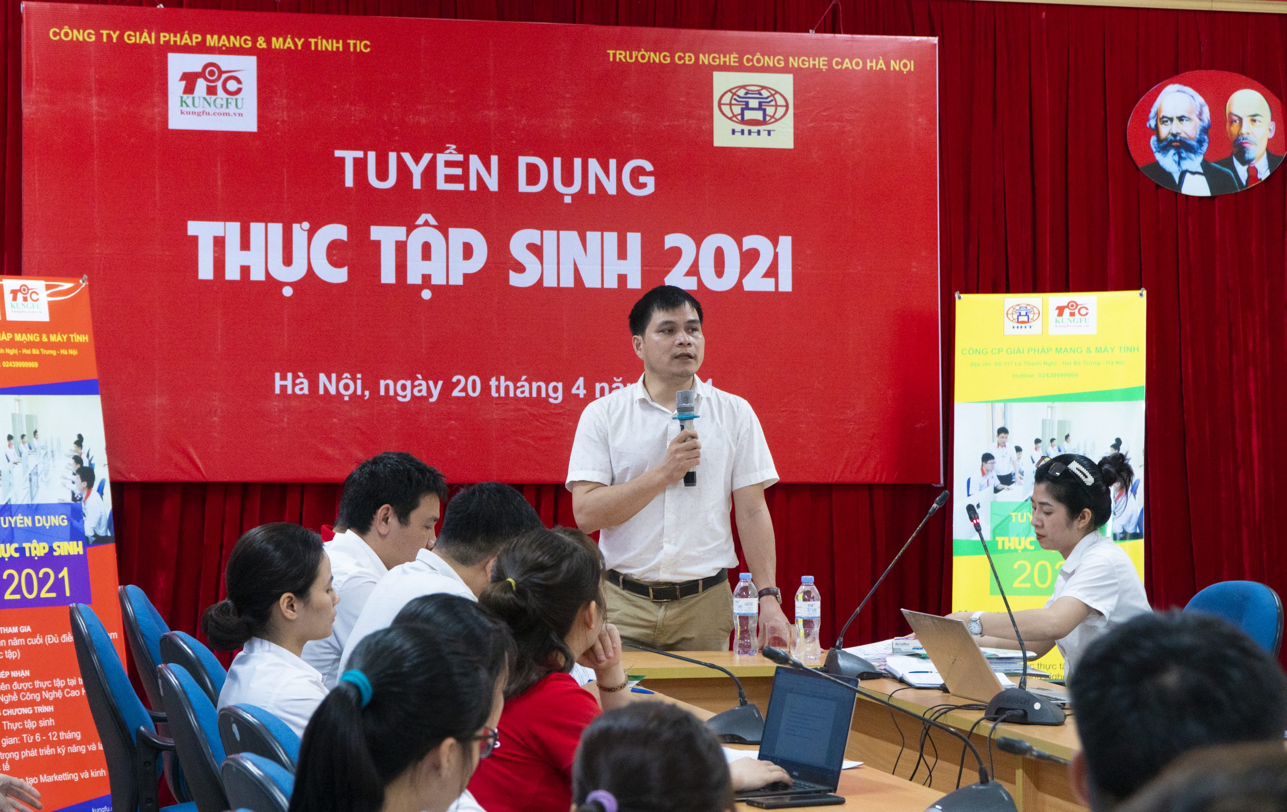 Ngày 20/04/2021, trường Cao đẳng nghề Công nghệ cao Hà Nội phối hợp với Công ty Cổ phần Giải pháp mạng và máy tính TIC-KUNGFU tổ chức ngày hội tuyển dụng thực tập sinh 2021 dành cho hơn 50 sinh viên K10, K11 các ngành CNTT (Ứng dụng PM), Thiết kế Web, Quản trị ND vừa và nhỏ, ngành Thương mại điện tử.
